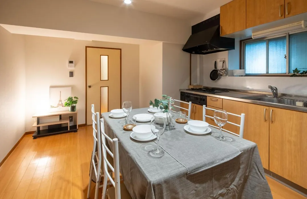 The apartment lies in the Shinagawa district, nearly a 10-minute drive from the Tokyo Tower.